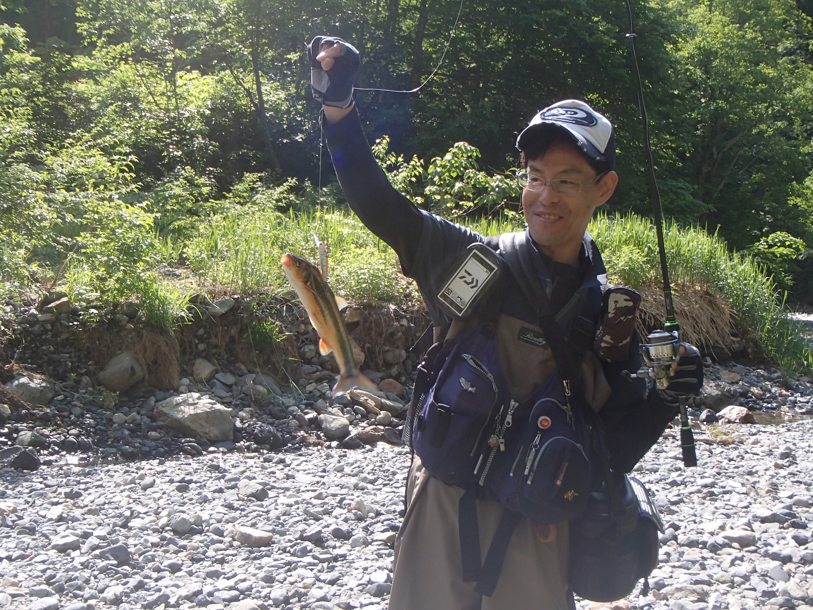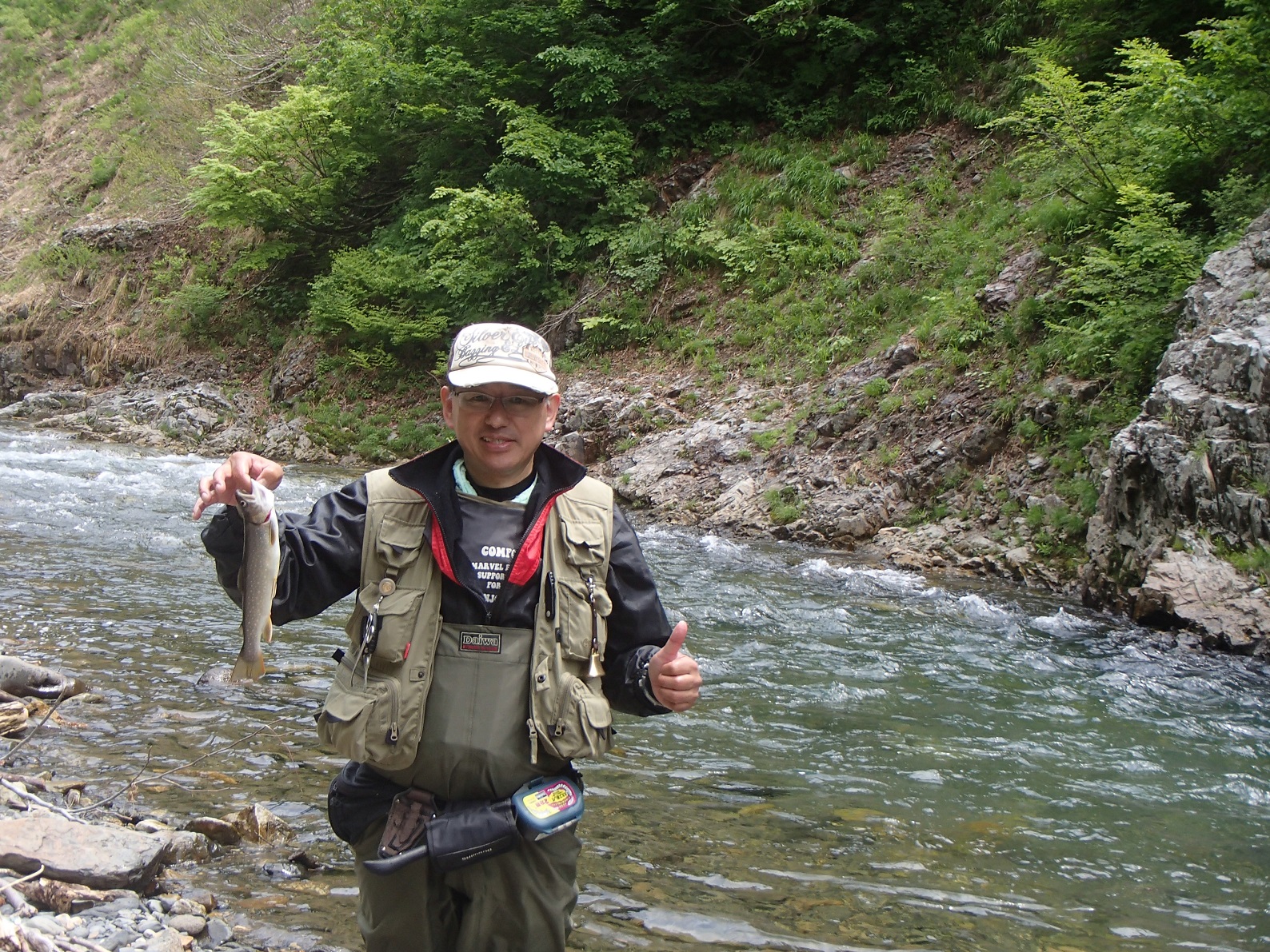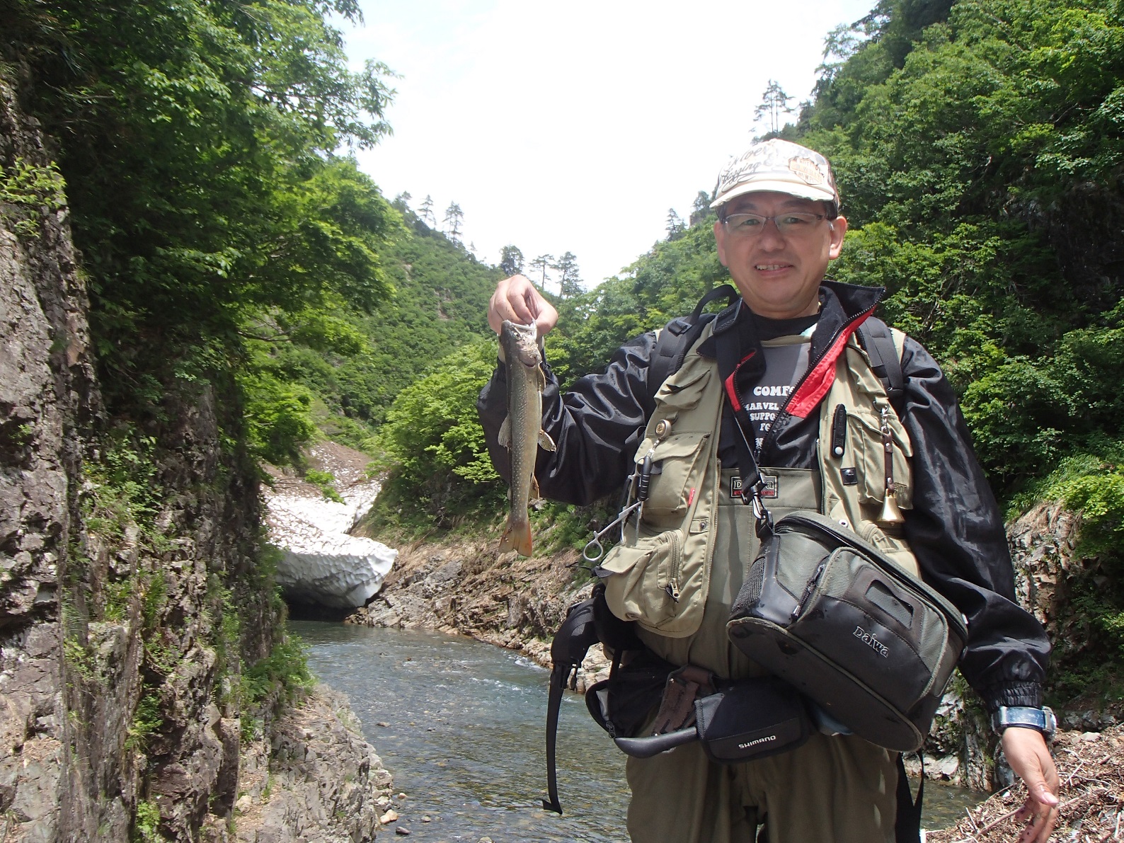 釣り下ったが自分が岩魚1尾を先輩の竿を借りて釣っただ