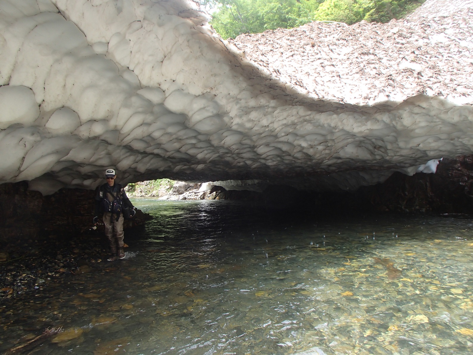 で残雪が沢山残っていてまだ入渓してる人がほとんど居ないので釣