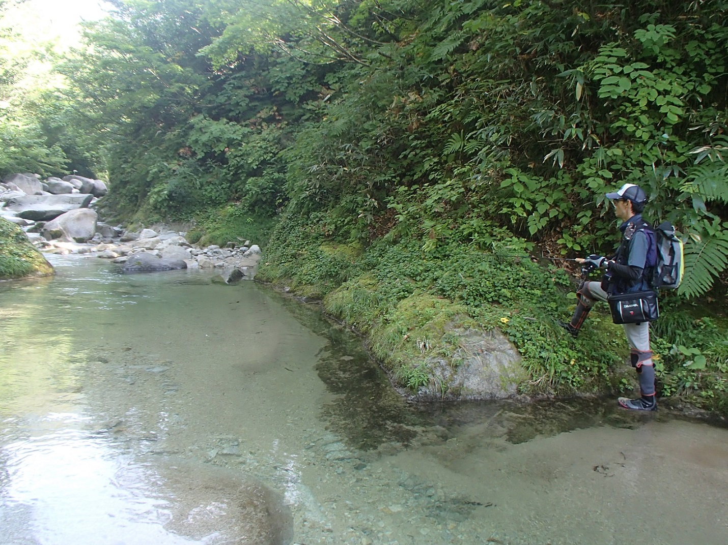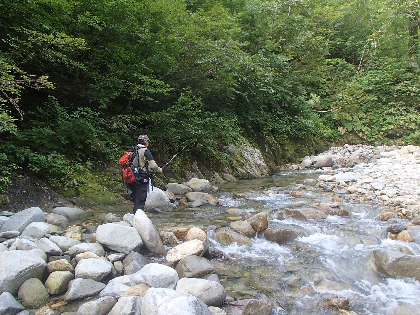 流れ込みから1時間ほど沢を歩き釣りを始めることにした。