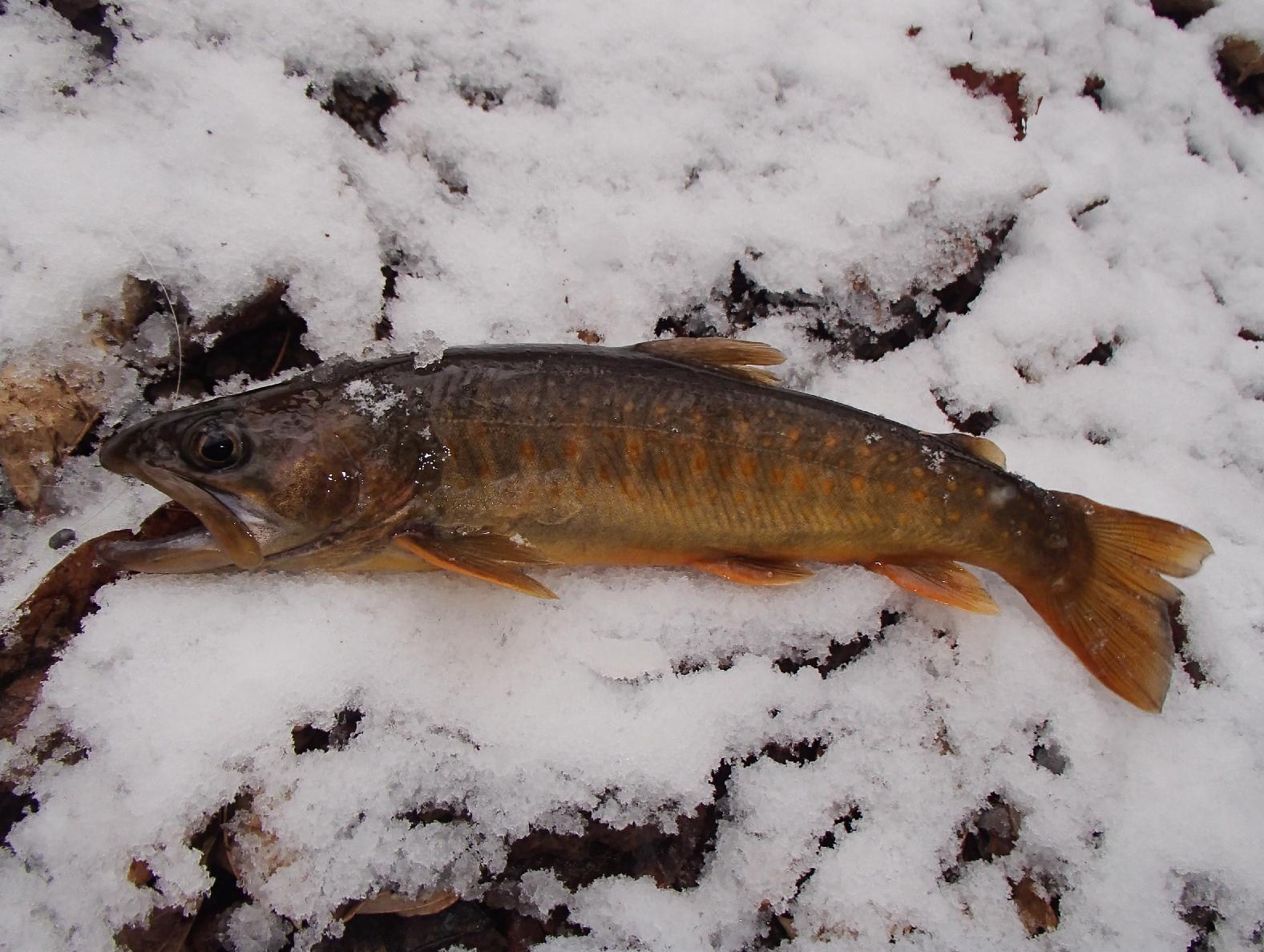 源流部で要約でた8寸クラスの源流岩魚。
