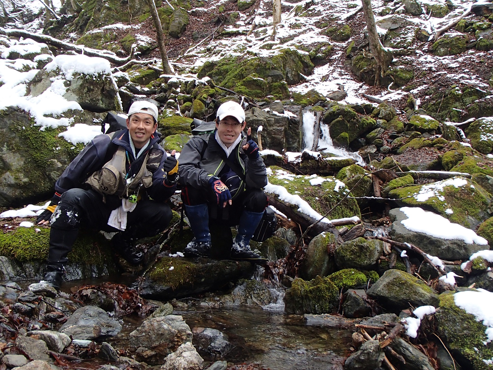 雪の中の遡行は滑べりやすく危険&疲れるので注意をしながら釣り上がって行った。