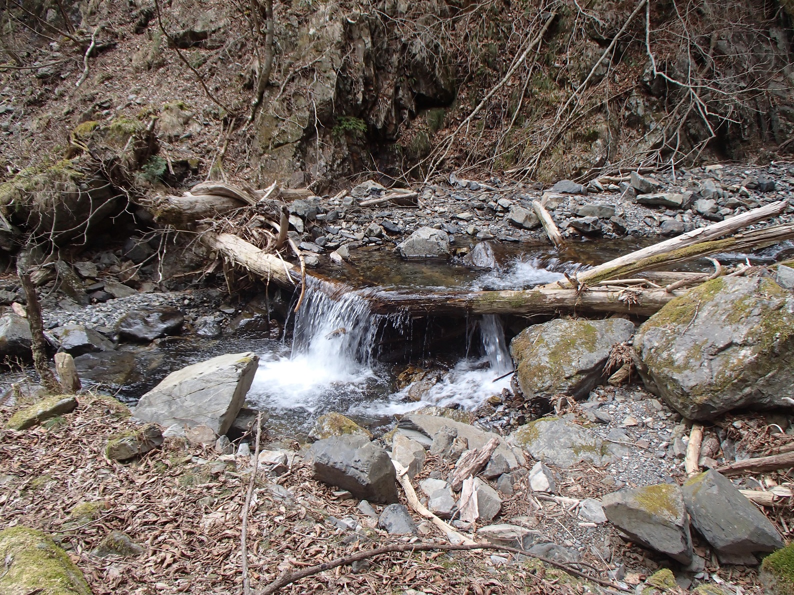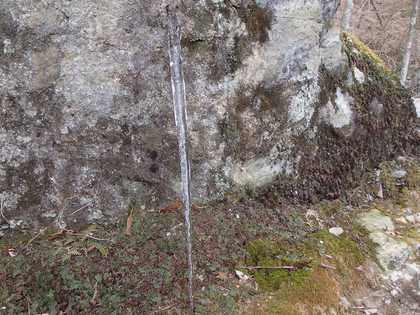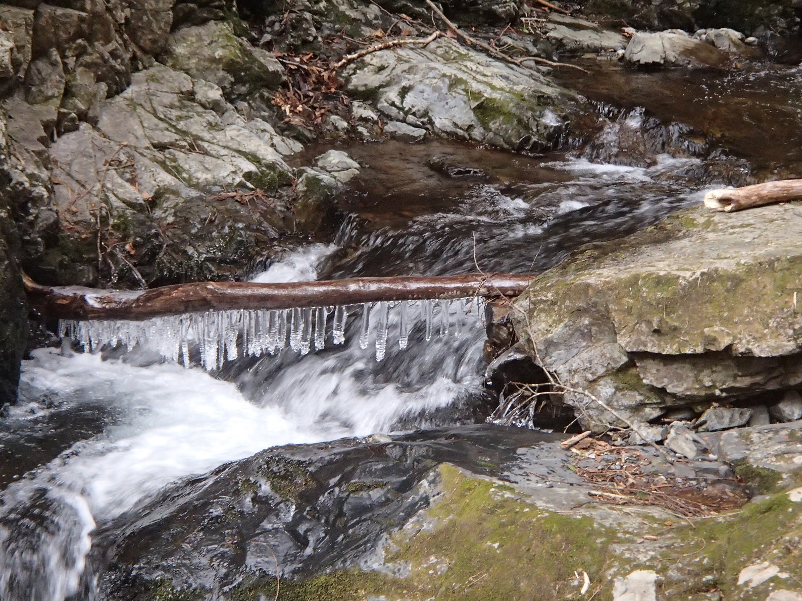 沢は氷点下で氷柱があちらこ