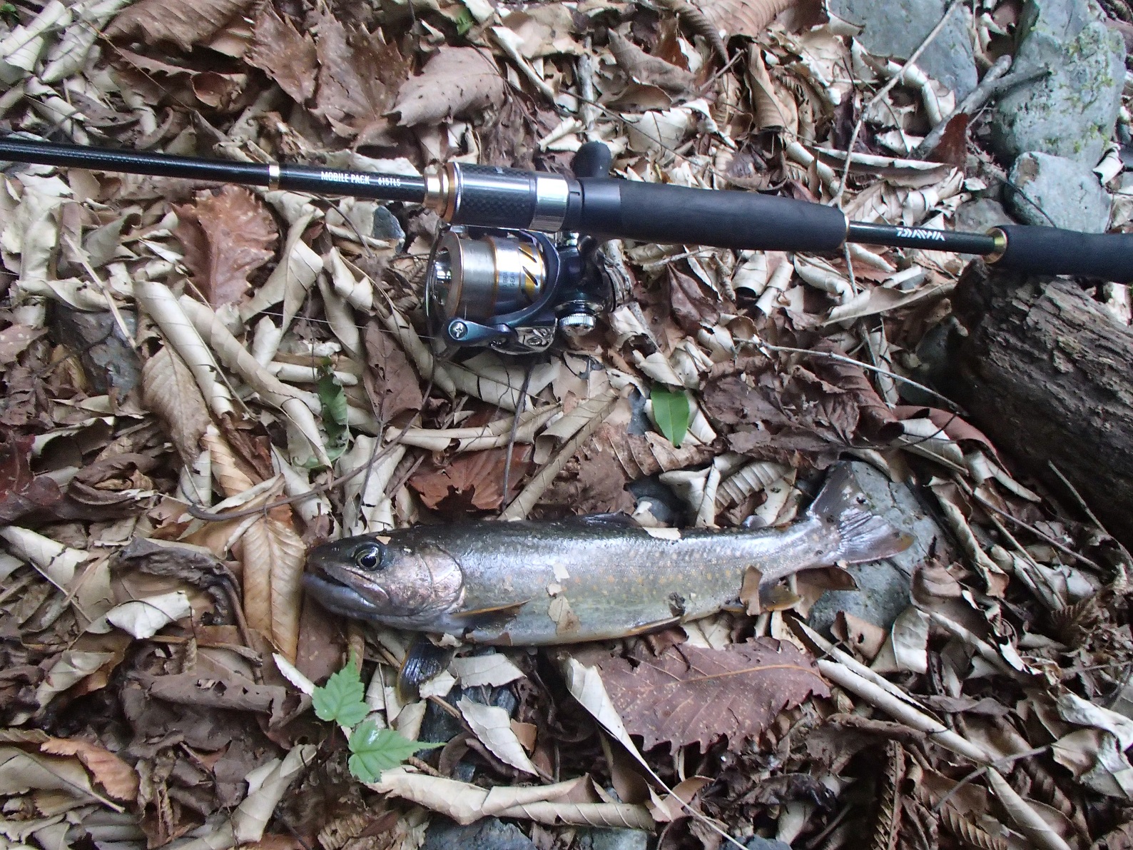 やっと釣れて良型岩魚 😀