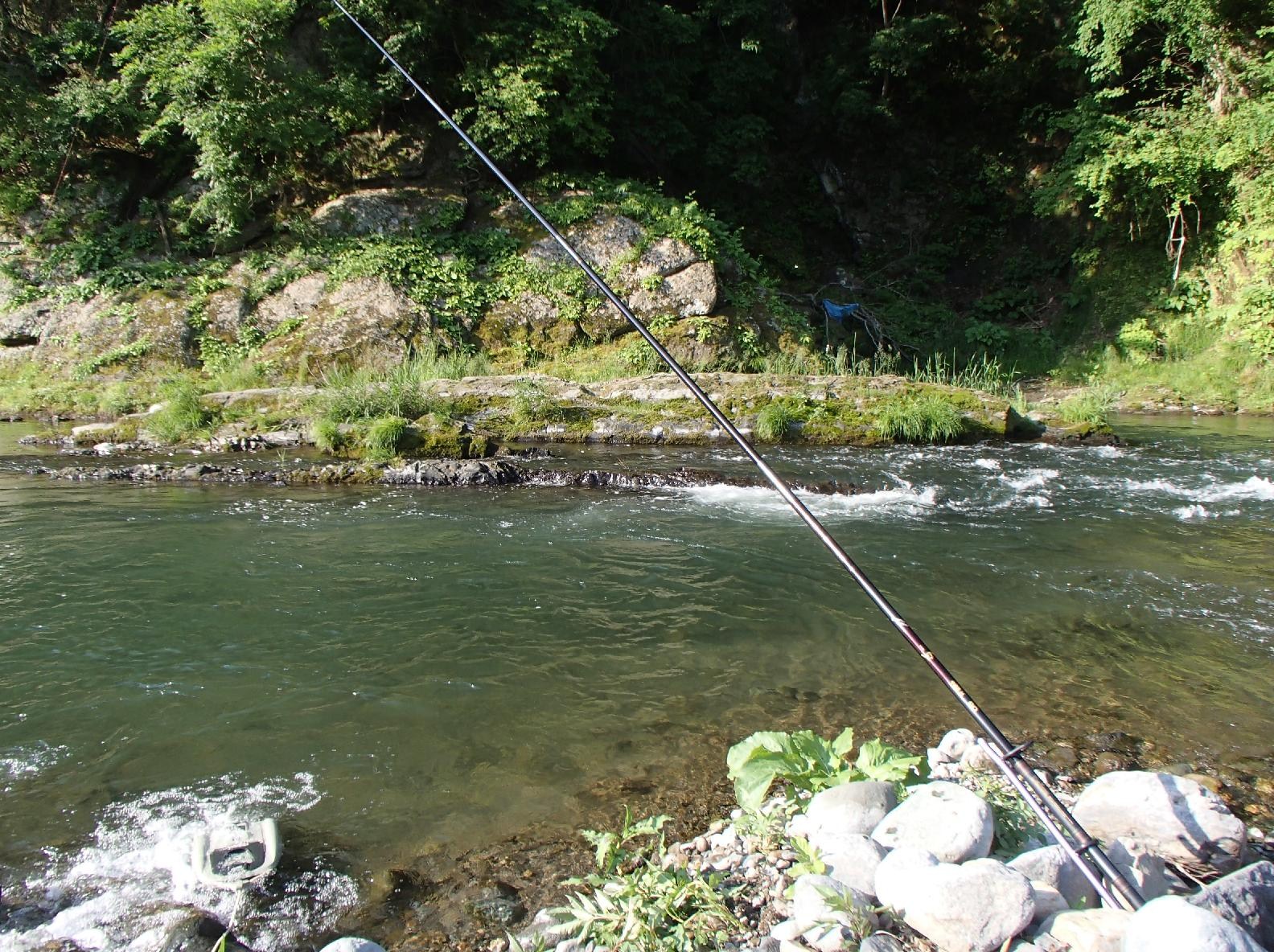 お昼頃に自分の上流側でやってた釣り人が居なくなったので弟を呼び竿を出すと