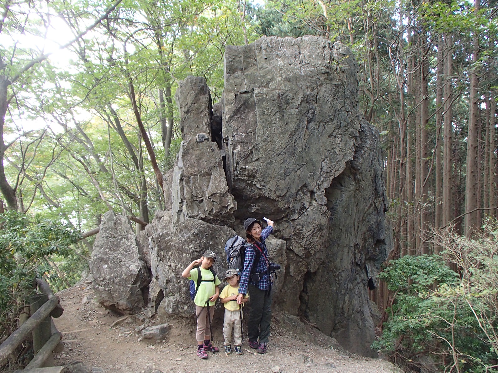 岩茸石の前で写真撮影。