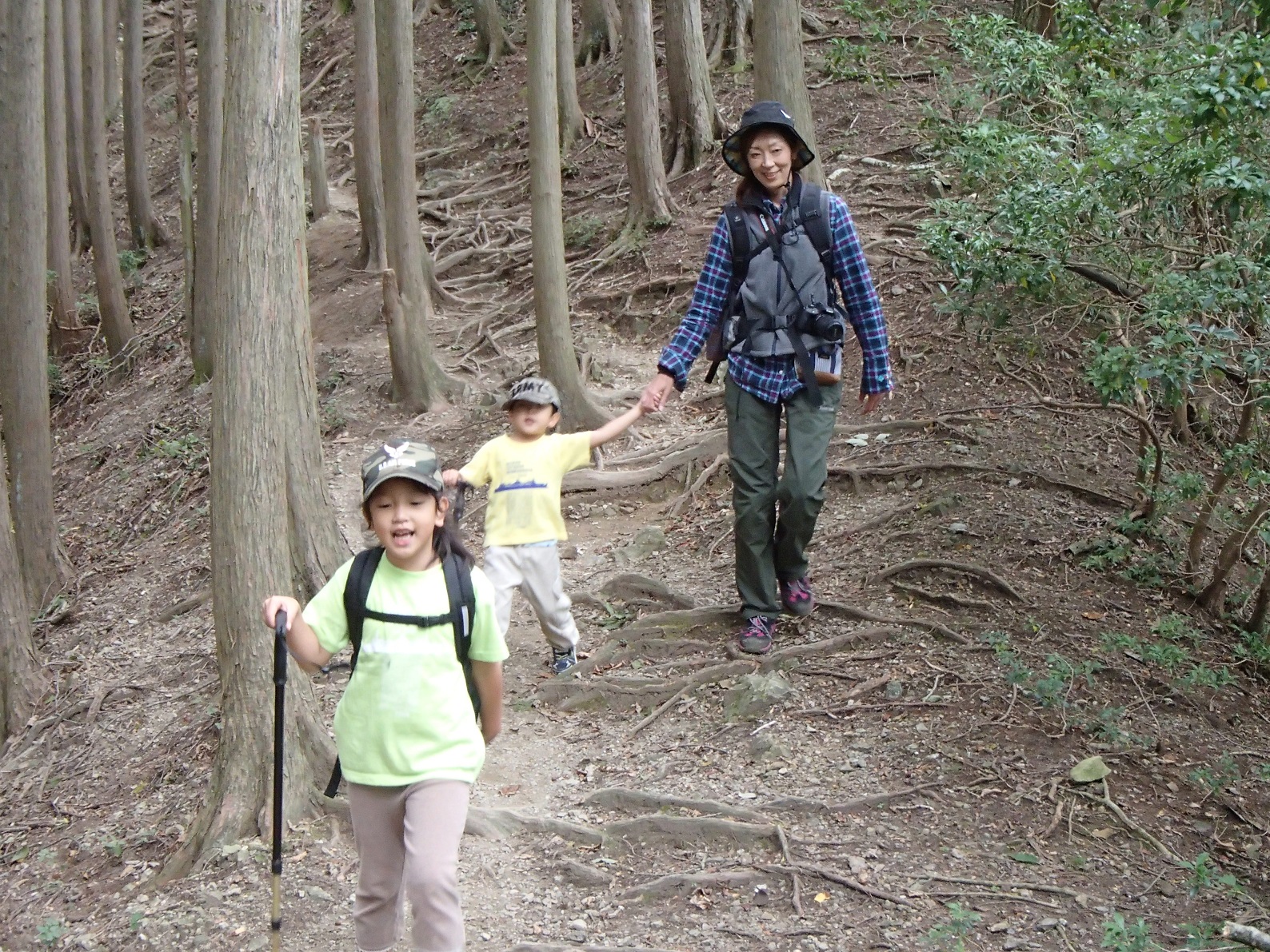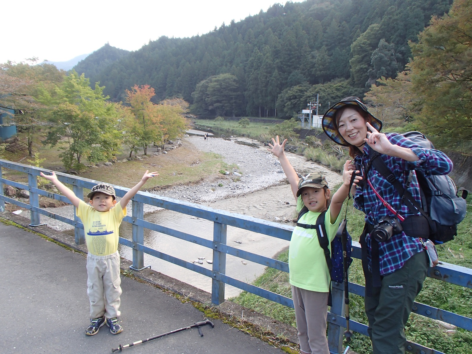 2時間のほど長い下りを歩き山道が終わると、泣言を言ってた子供達は息を吹き返すようにはしゃぎ、