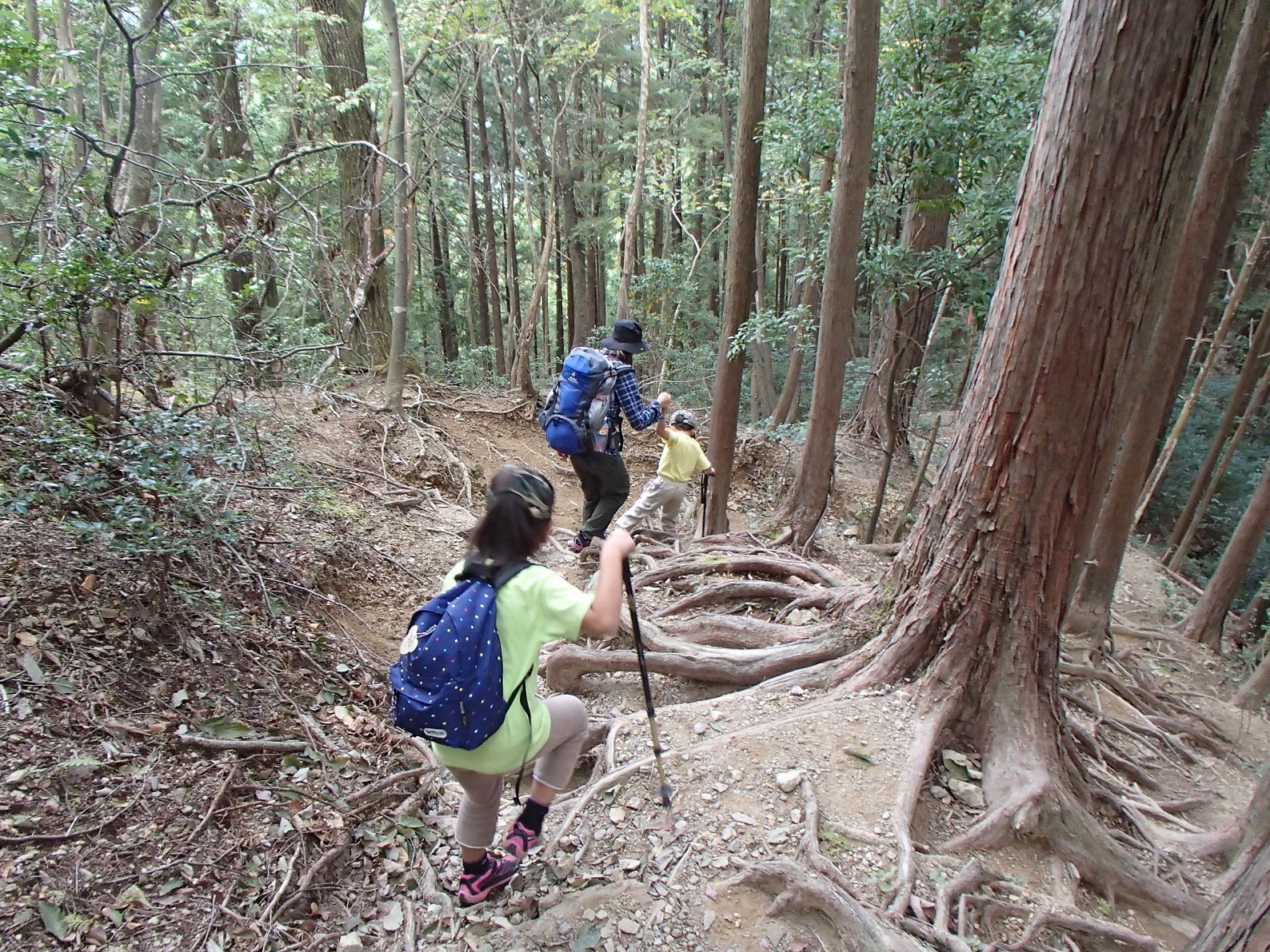 8時半頃登山道入り口をスタート。登り始めると10分もしないうちに娘が疲れたと言い始め