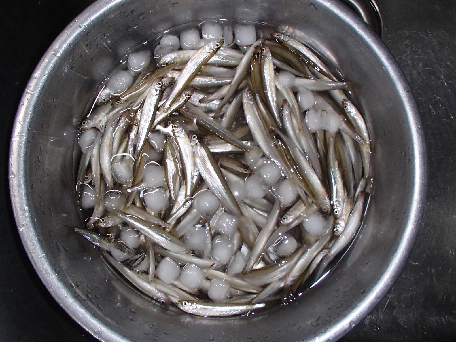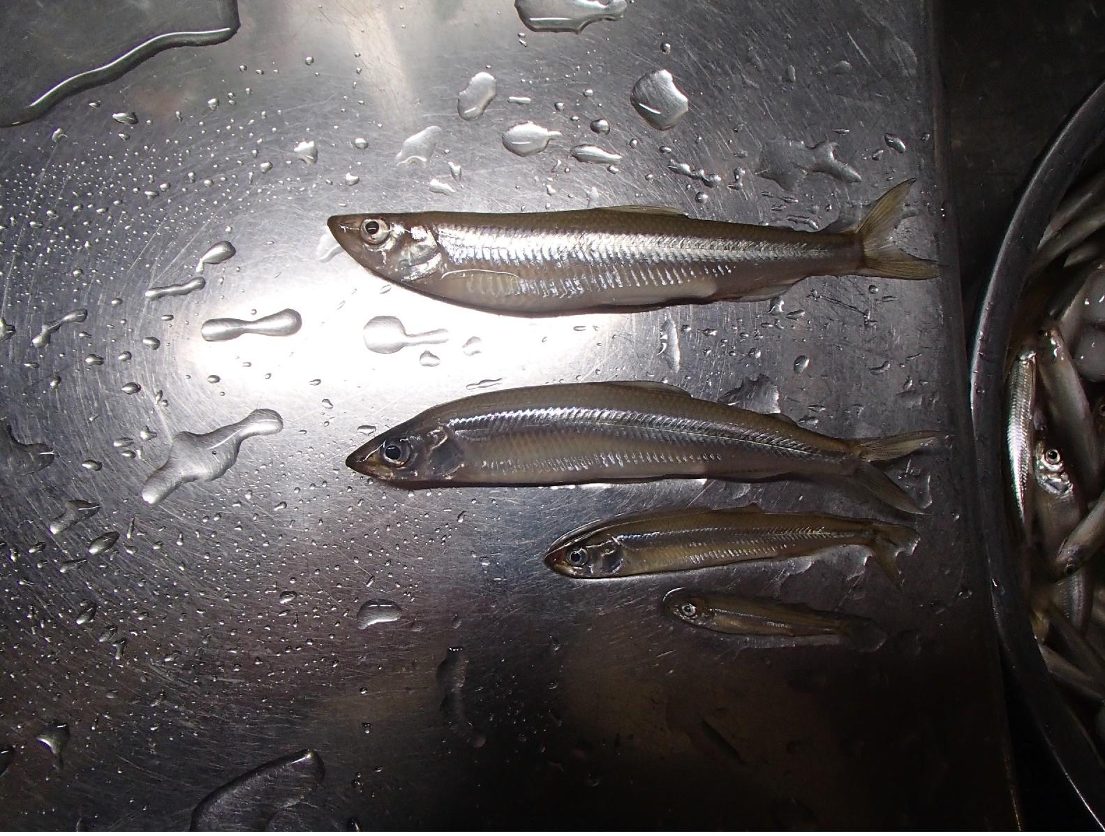 下から2番目がワカサギの平均サイズ。