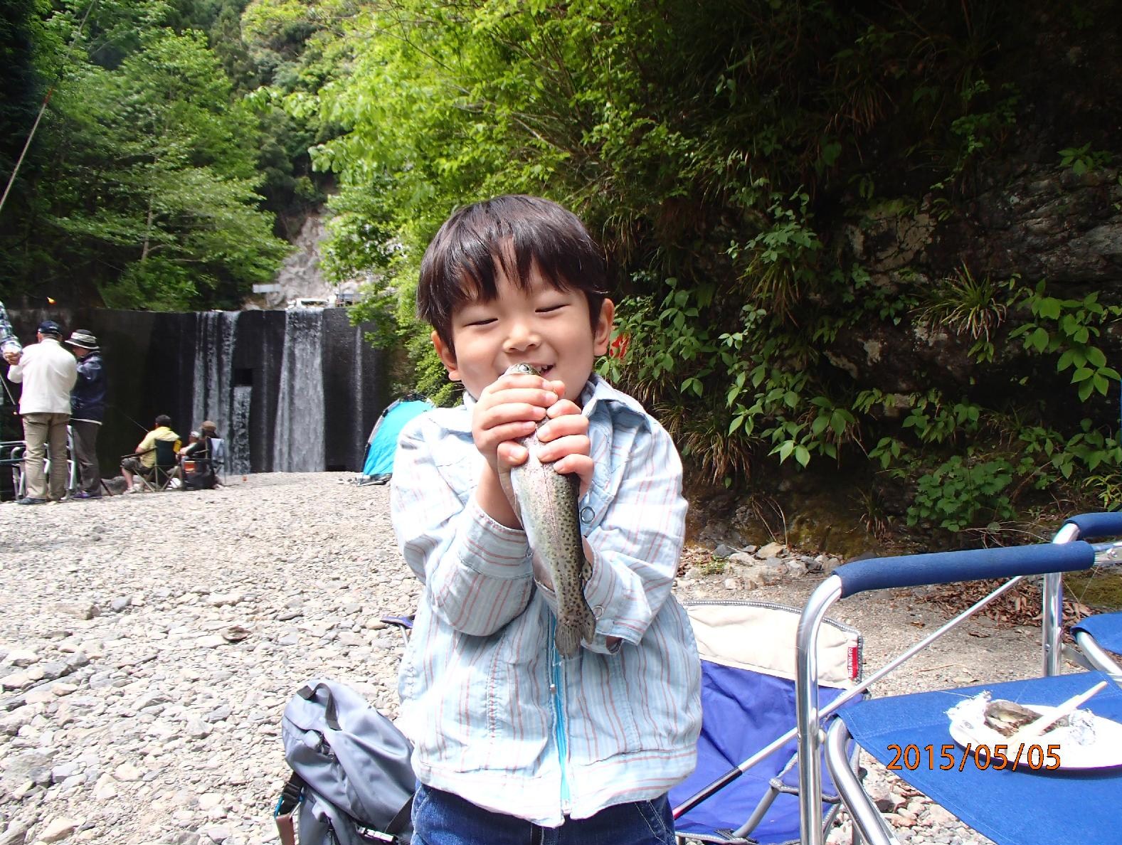 自分で釣って喜ぶ息子。