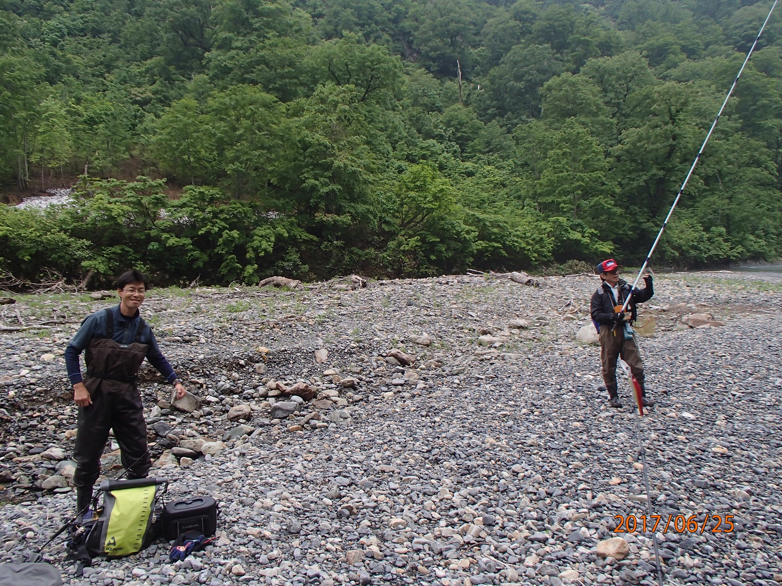 釣り下った。下り始めてやっと弟にも待望の1尾目が釣れた。