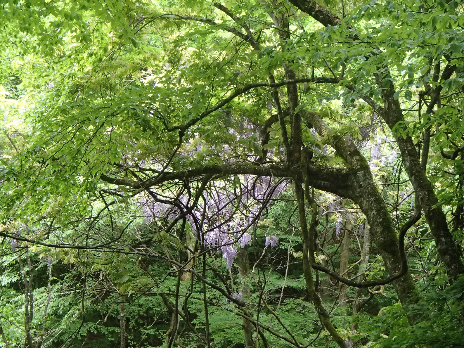 帰りは新緑と藤の花を見ながら