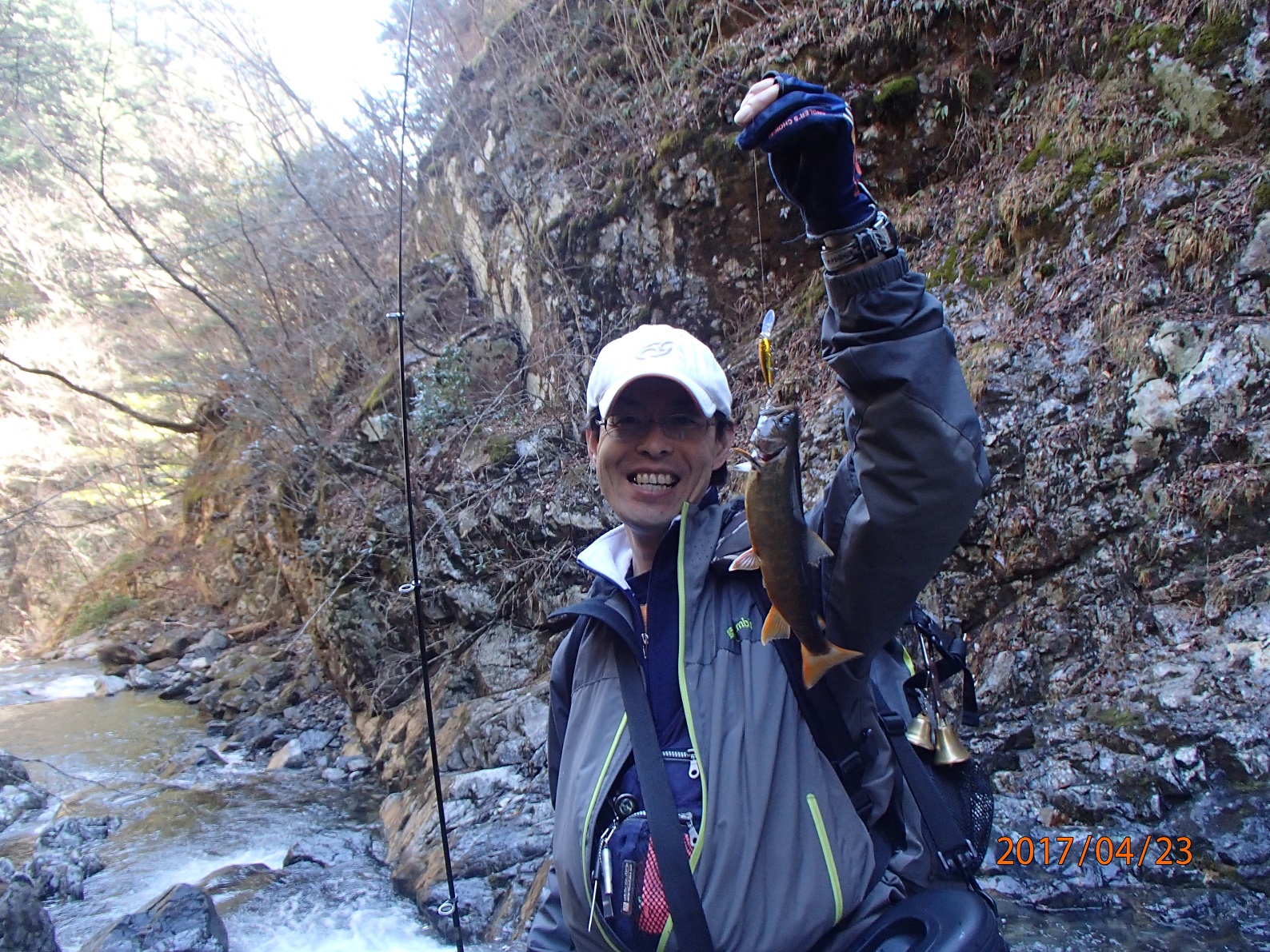 魚の反応が少ない中釣り上がって行った。最初に釣れたのが自分で