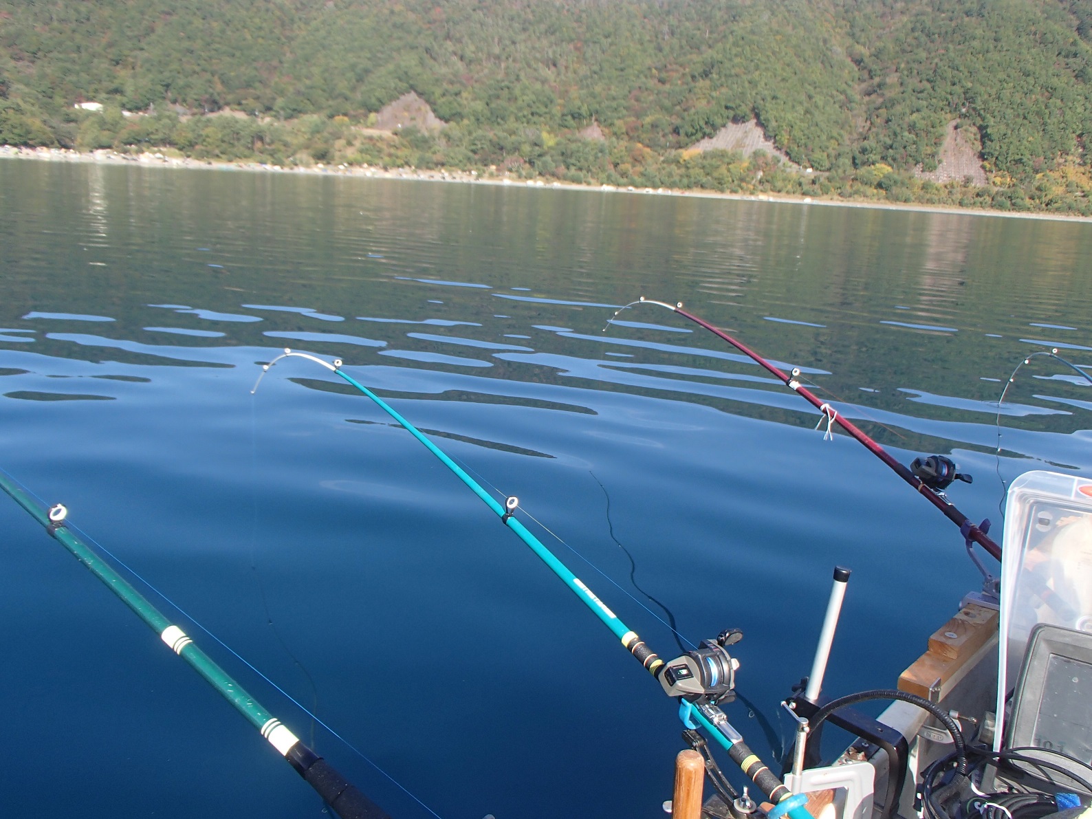 魚探を見るが魚の気配は全くなし・・・(汗)