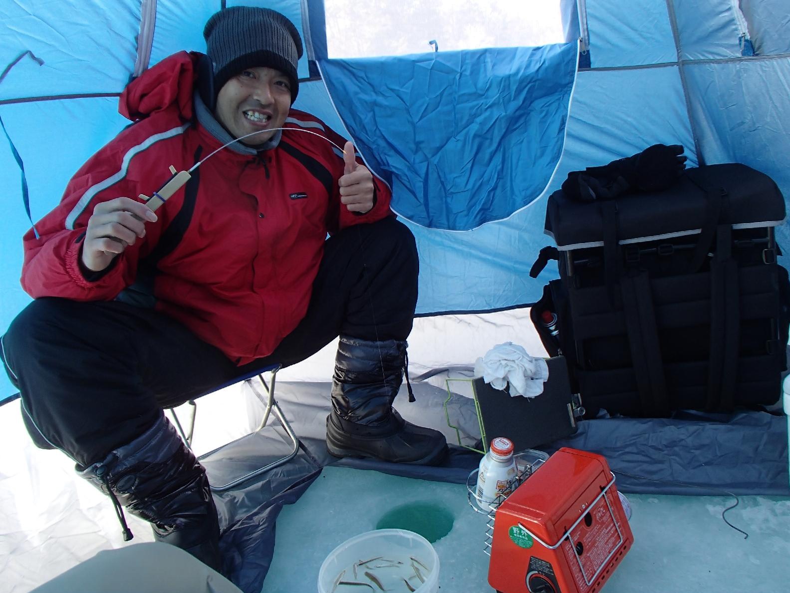 結局、最後までテントの中でワカサギの群れが来るのを待つ釣りとなってしまった。