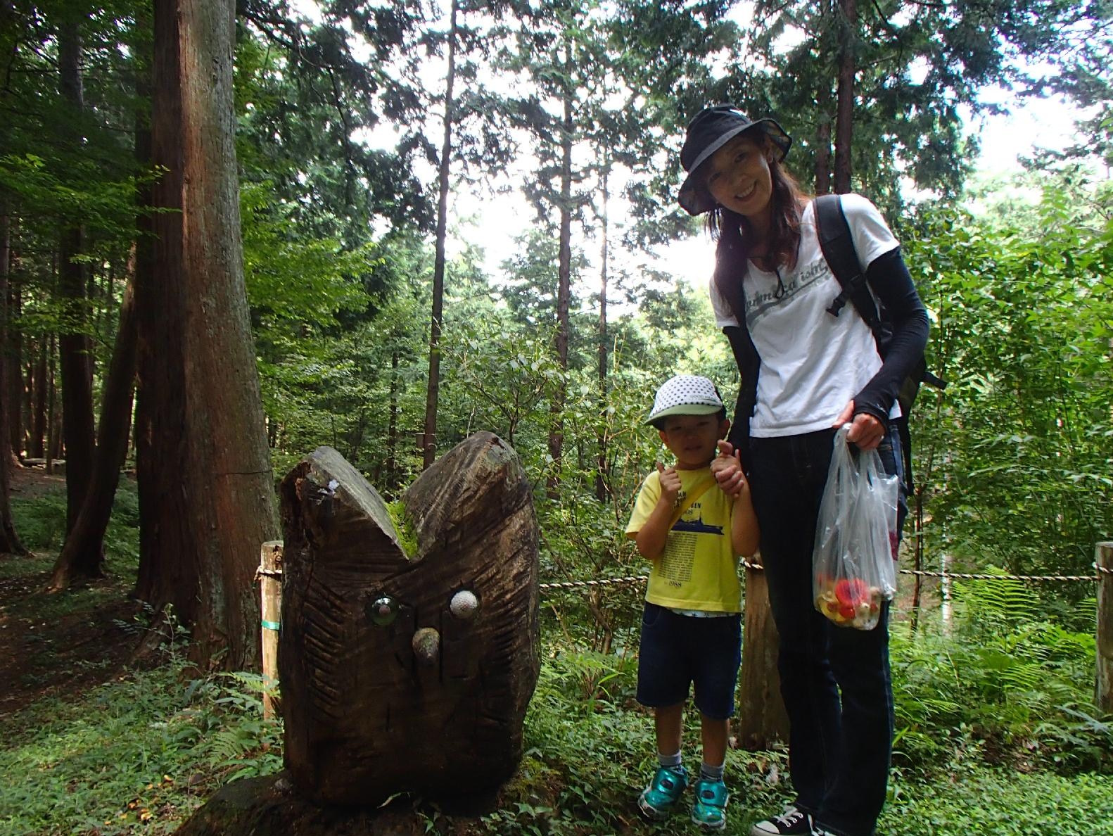 途中、フクロウ?の彫り物