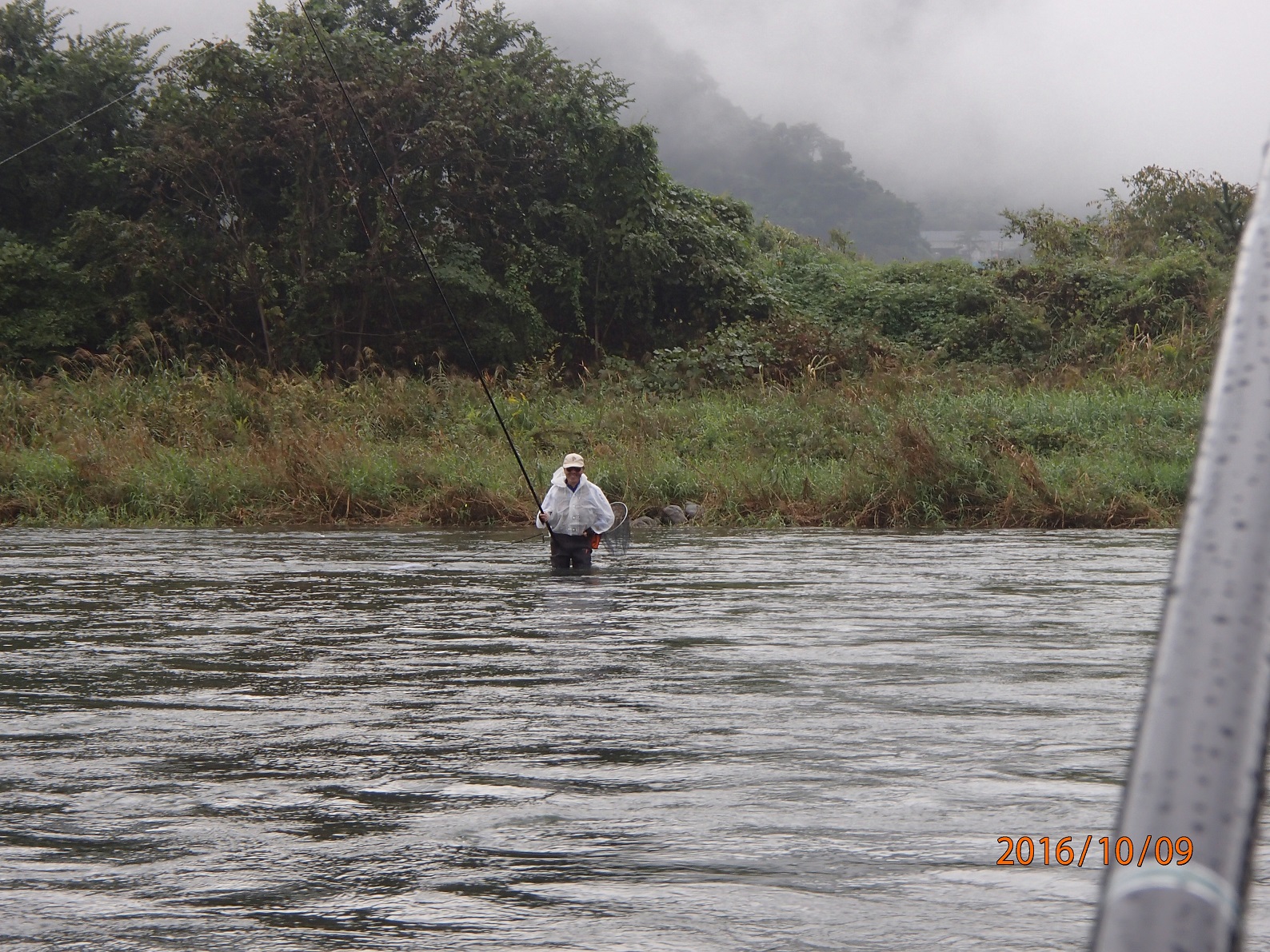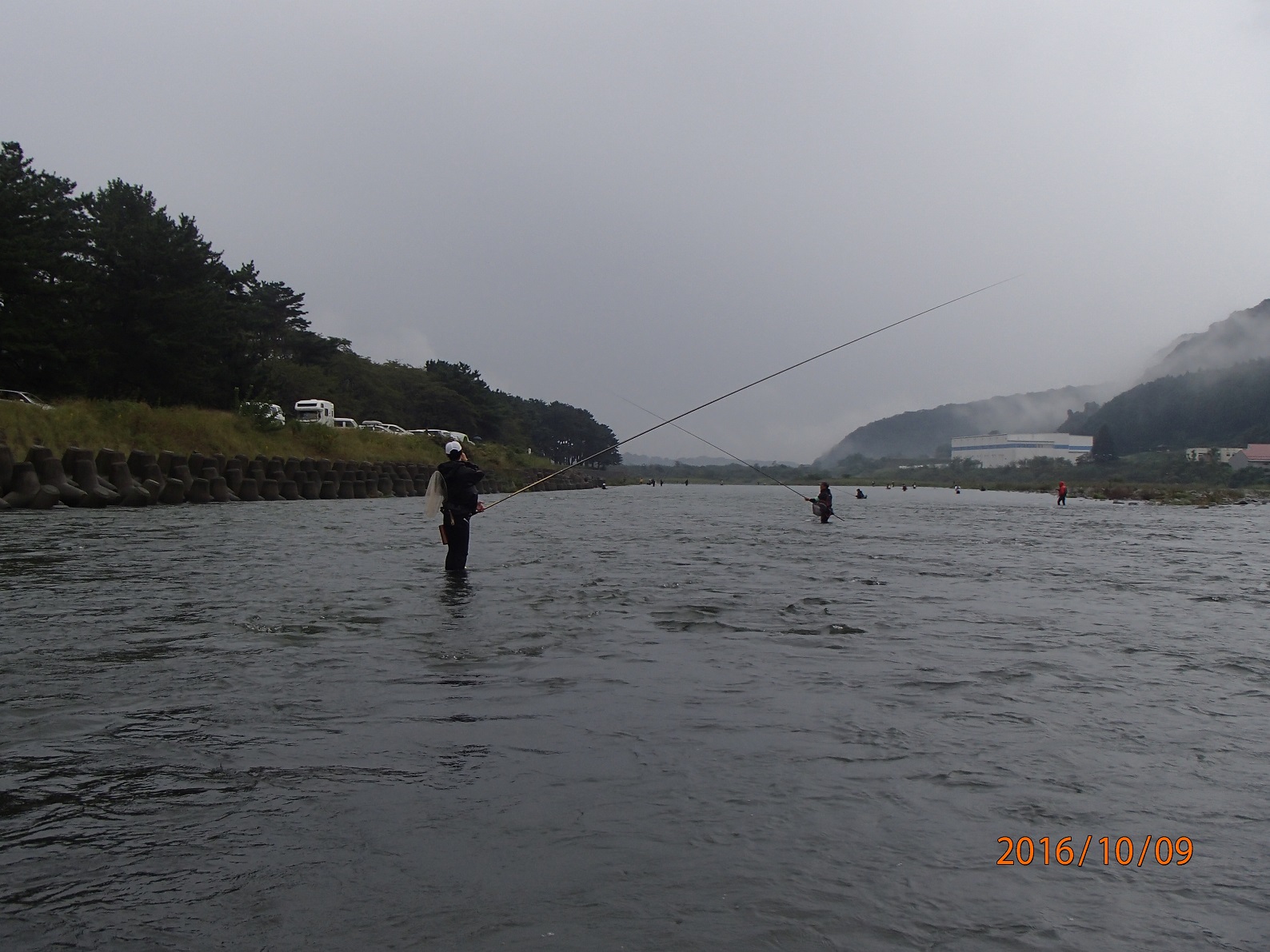 雨脚が弱くなった時に準備を済ませ釣り開始。1時間もしないうちに